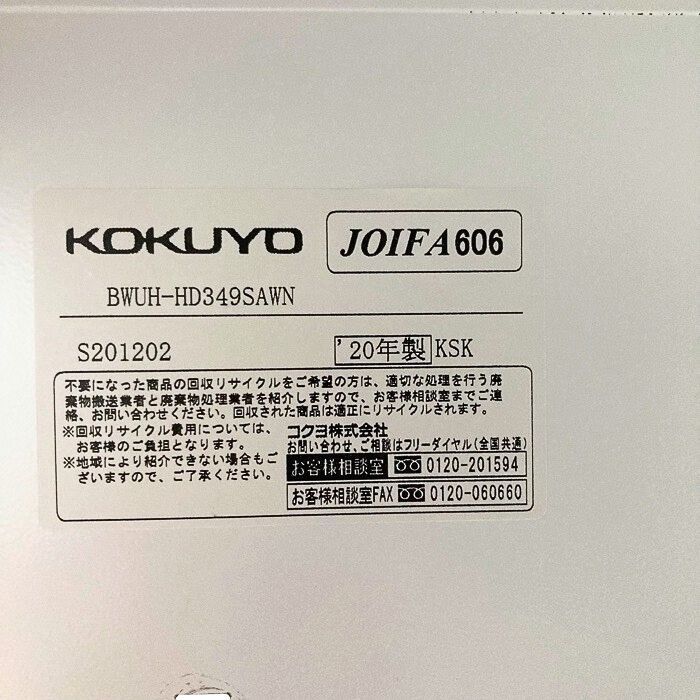 コクヨ エディアシリーズ 上下3枚引違い戸書庫 W900×D450×H1675 ホワイト 2020年製 中古