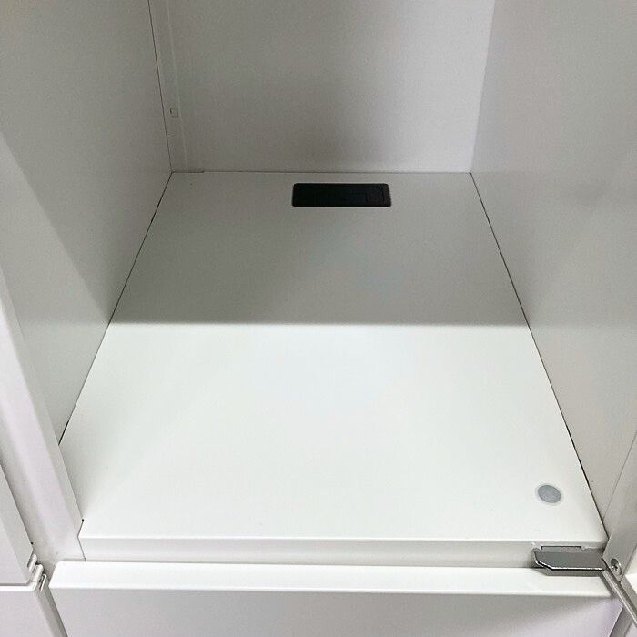 庫内の底部に配線孔がありますので、コンセントを取り付けることでモバイル類の充電も可能です。