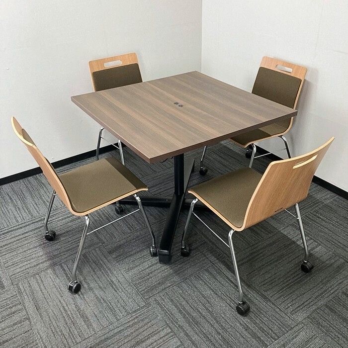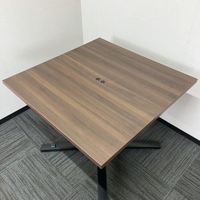 オカムラ ライブスシリーズ フラップタイプテーブル 87AEFJ MDA6 W900×D900×H720 天板:プライズウッドダーク/脚:ネオブラック 2021年製 中古 ⑩