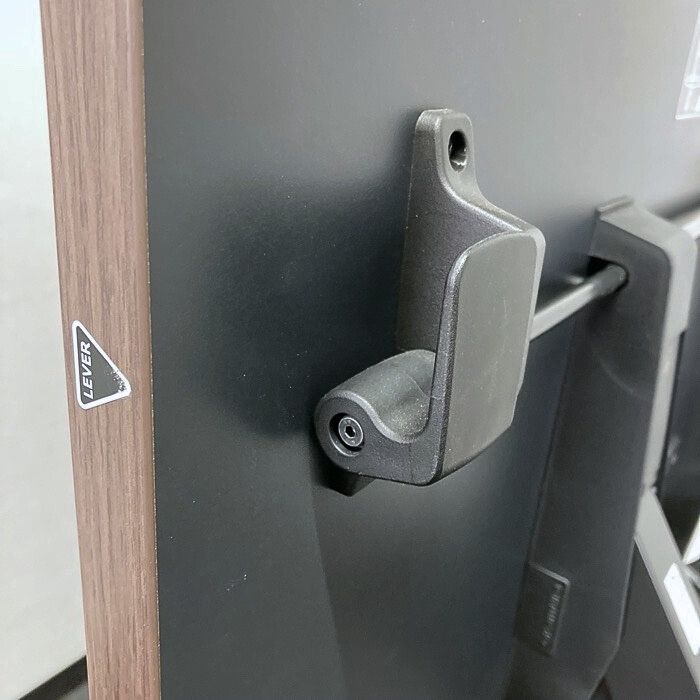 キャスターは脚前部のスイッチを踏むことでロック、フリーが設定可能です。