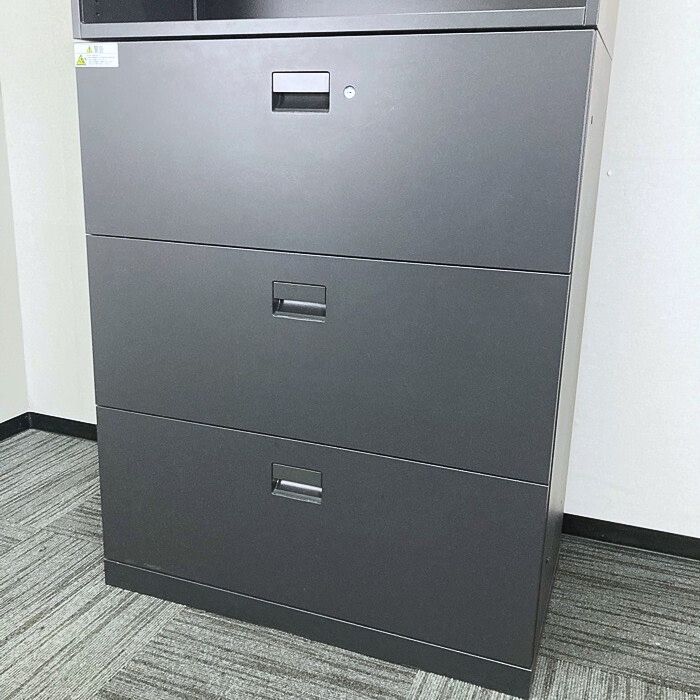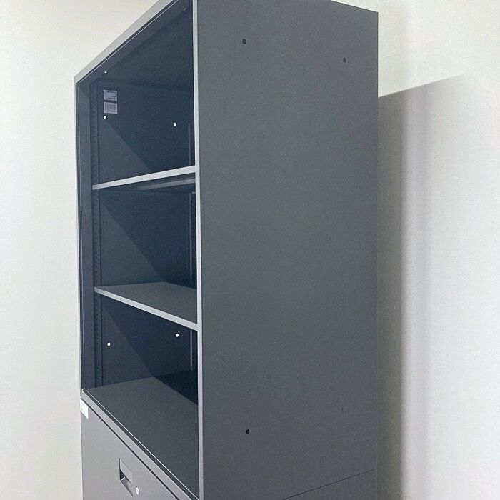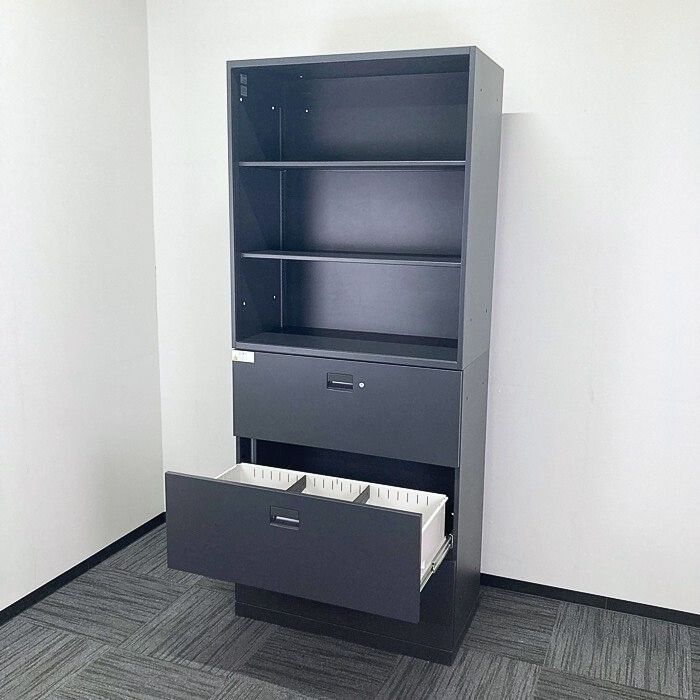 イトーキ エスキャビネットシリーズ オープン棚型+ラテラルキャビネット W900×D450×H2136 サテンブラック 2017年製 中古