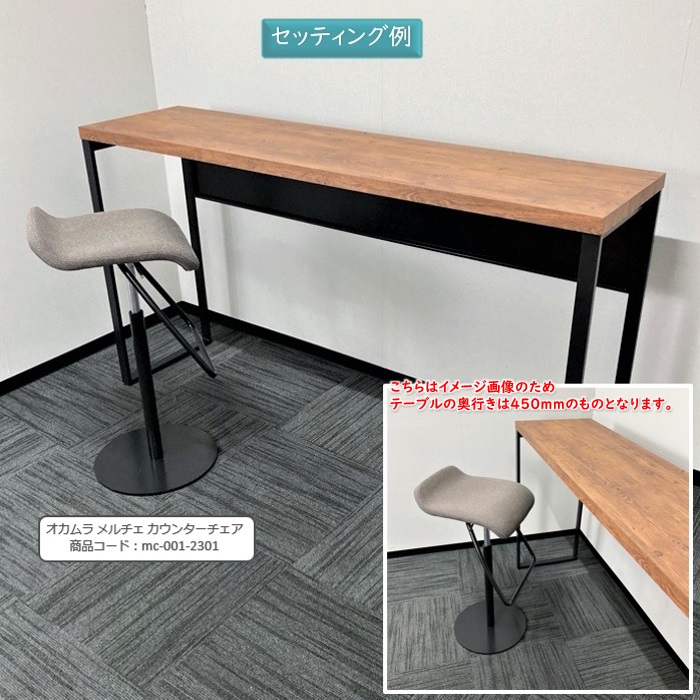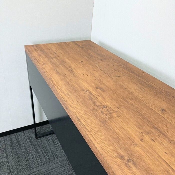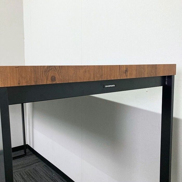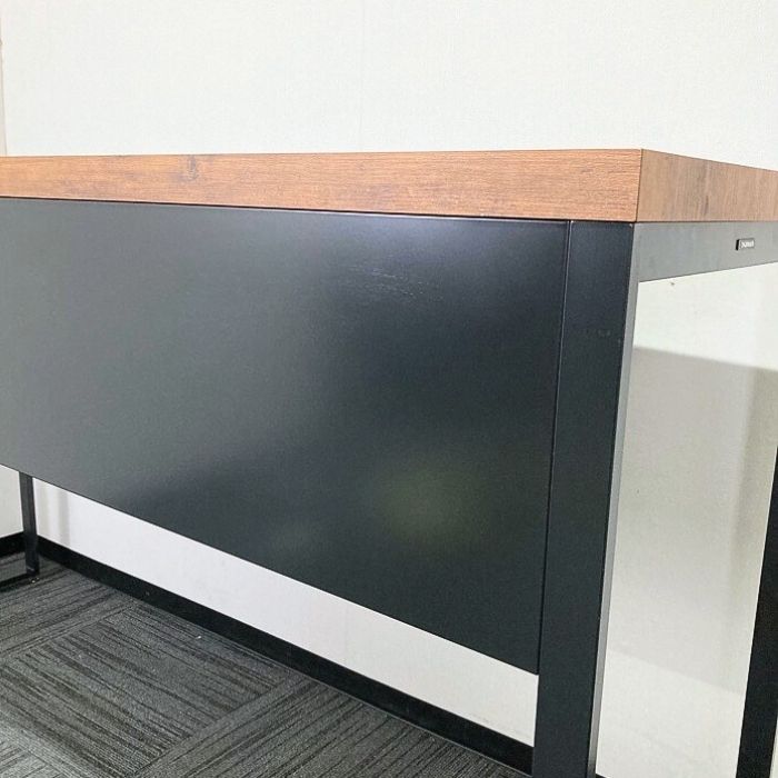 オカムラ アルトピアッツァシリーズ 片面カウンターテーブル MB6B2A MW73 W1800×D600×H1000 天板:ラスティックパイン/本体:ブラック 2019年製 中古