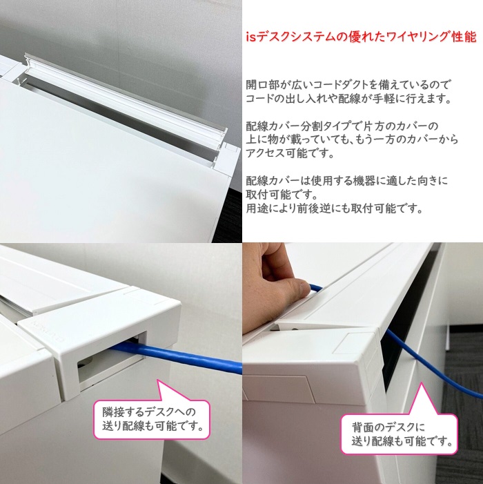 天板後方に配線カバーを備え乱雑になりがちなコード類をまとめて整理できます。