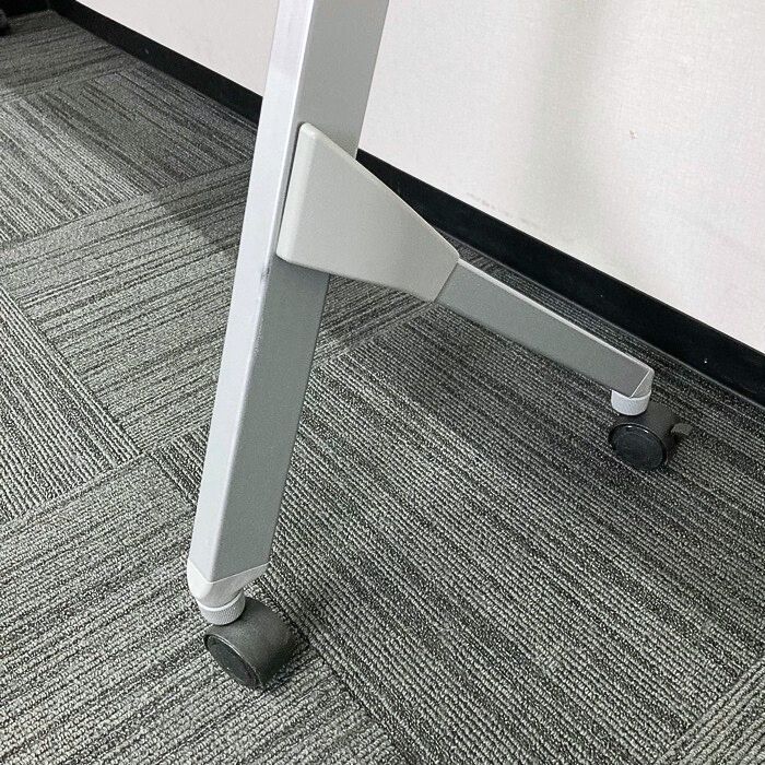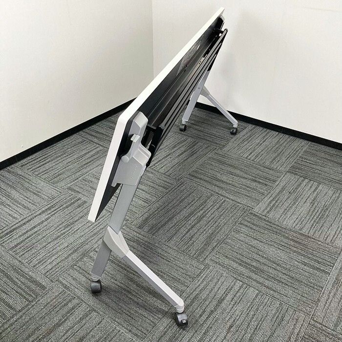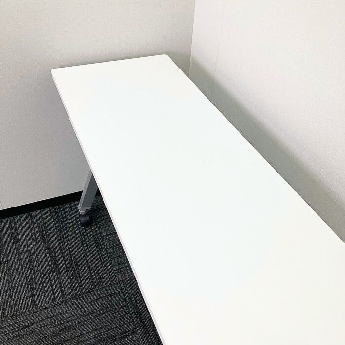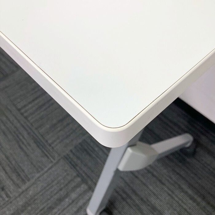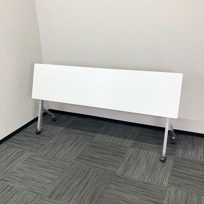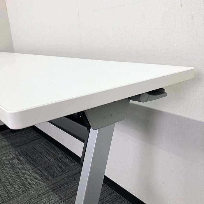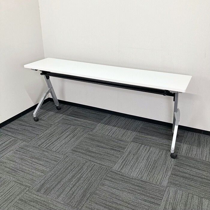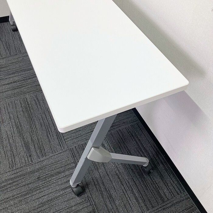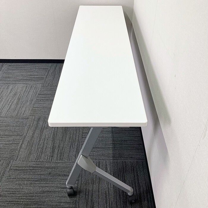 オカムラ フラプターシリーズ 平行スタックテーブル 81F1CA MG99 W1800×D450×H720 天板:ホワイト/脚:シルバー 幕板なし 2014年製 中古 ⑩