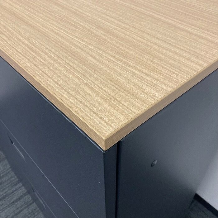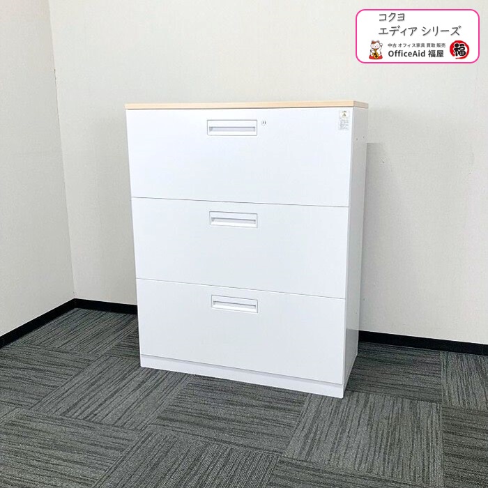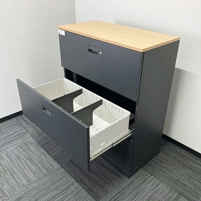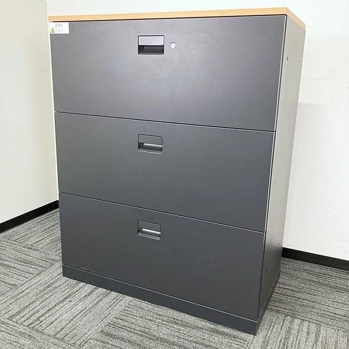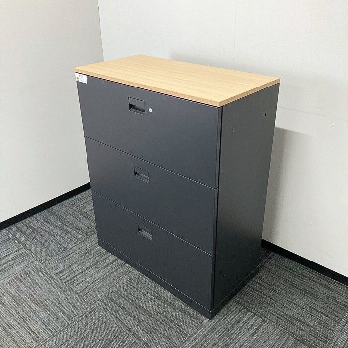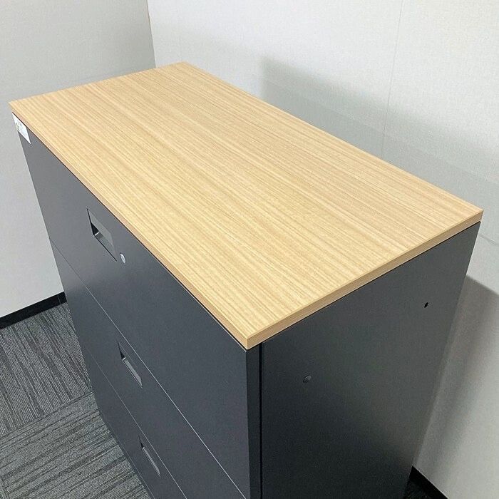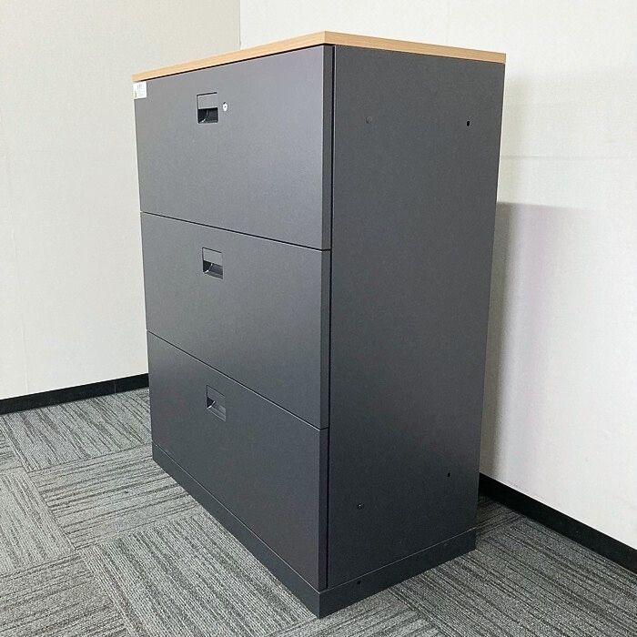 イトーキ エスキャビネットシリーズ 3段ラテラルキャビネット H1-M1090AAS-T1 W900×D450×H1118 天板:ファインウォールナットL/本体:サテンブラック 2017年製 中古 ⑩