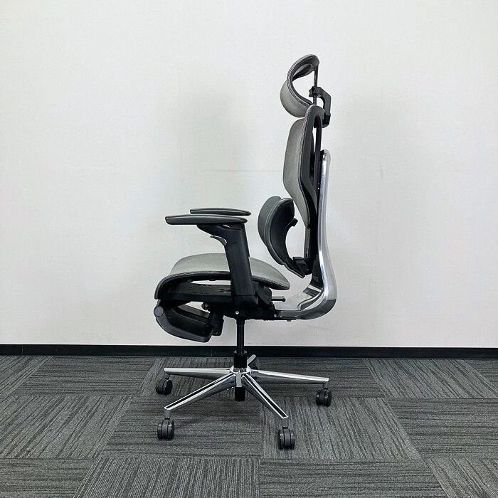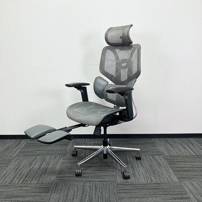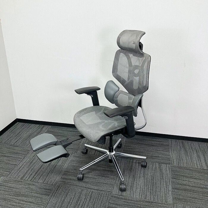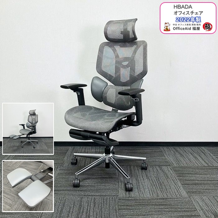 HBADA オフィスチェア E301BSB-CB 可動肘付き ヘッドレスト付き オットマン付き グレー 2022年製 中古 ⑩