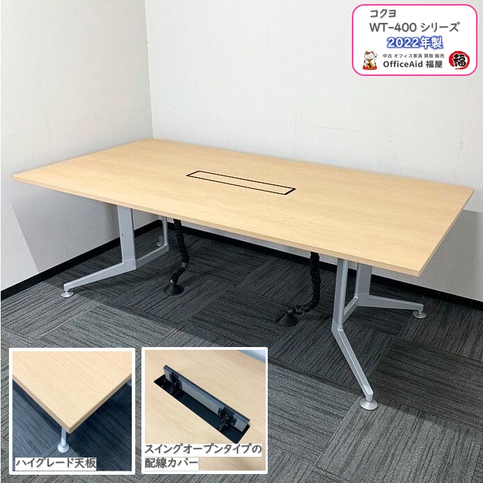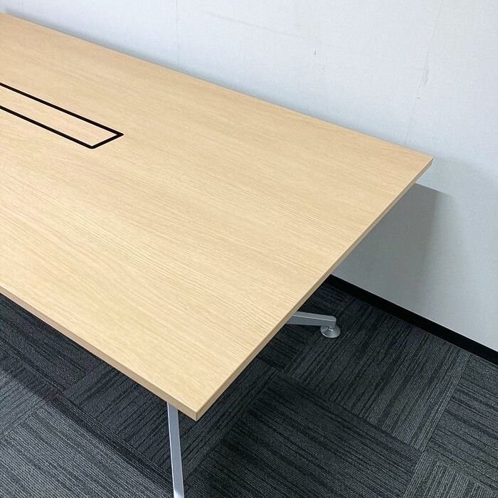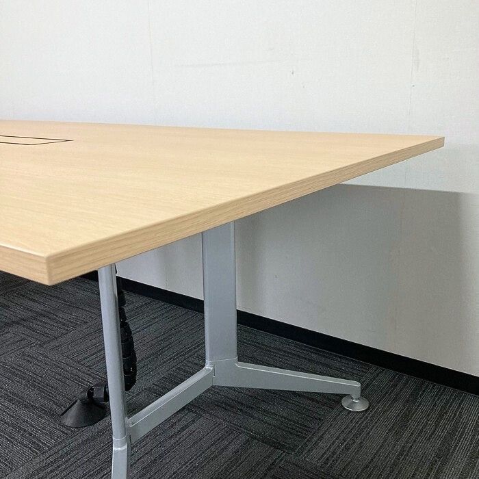 コクヨ WT-400シリーズ 大型会議用テーブル W40T-KW2111D1-MU11 W2100×D1100×H720 天板:ナチュラルオーク/脚:フラットシルバー 2022年製 中古 ⑩