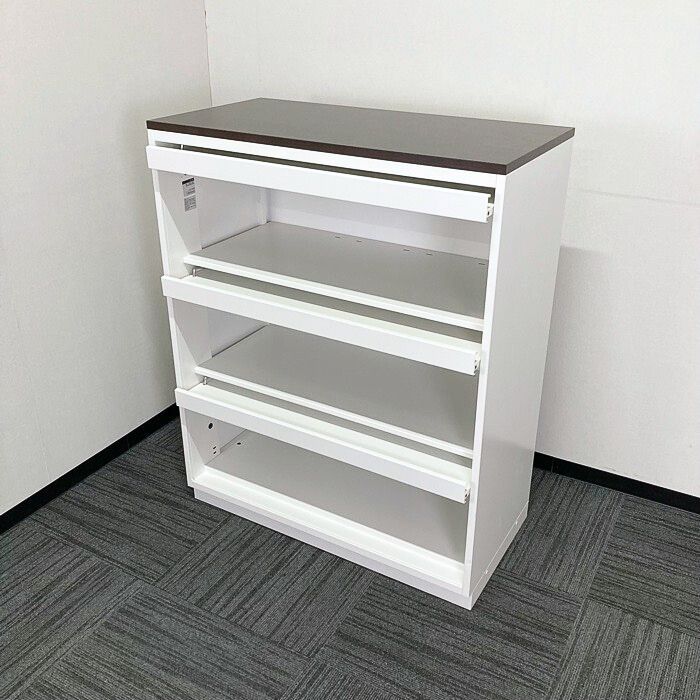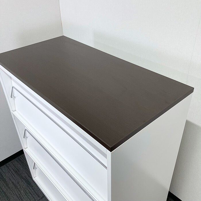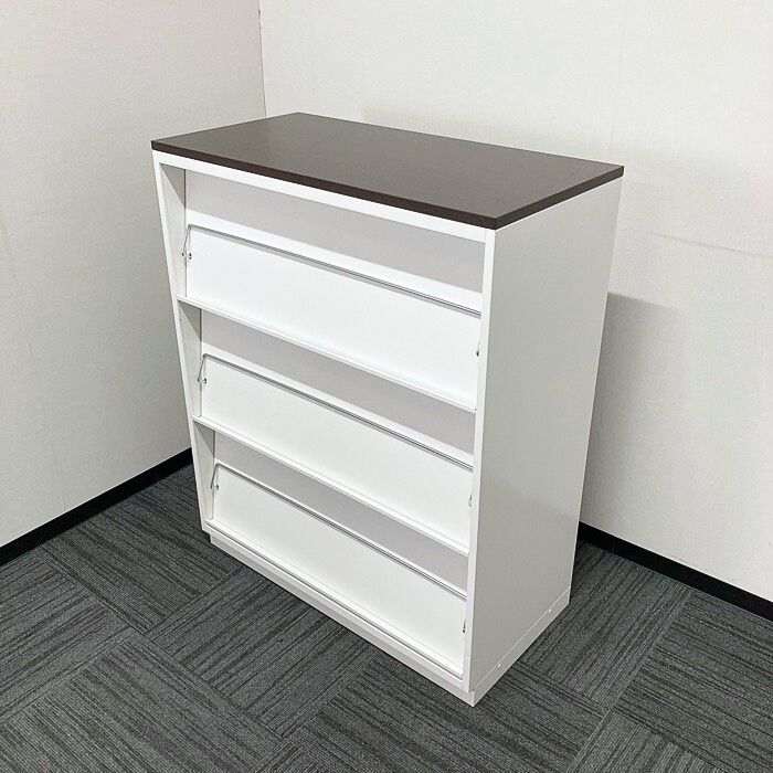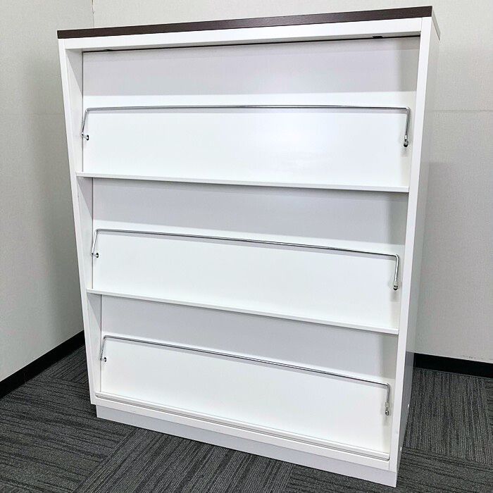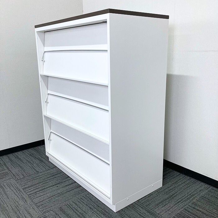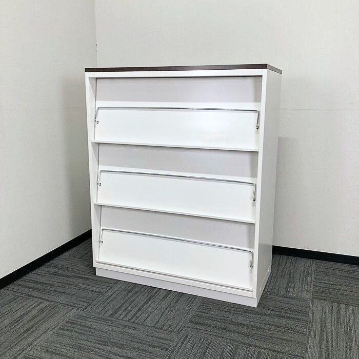 イトーキ シンラインキャビネットシリーズ 雑誌架型 HTM-109BHS-W9 W900×D450×H1118 天板:ブラックウォールナット/本体:ホワイト 2011年製 中古 ⑳