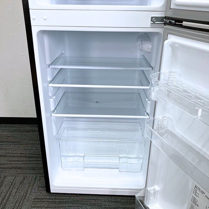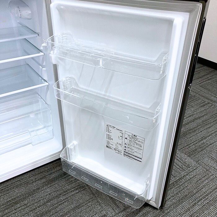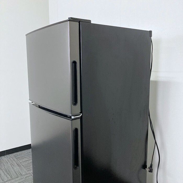 マクスゼン 2ドア冷凍冷蔵庫 JR118ML01GM 寸法:W495×D520×H845 容量:118L ドア:ガンメタリック/本体:ブラック 2019年製 中古
