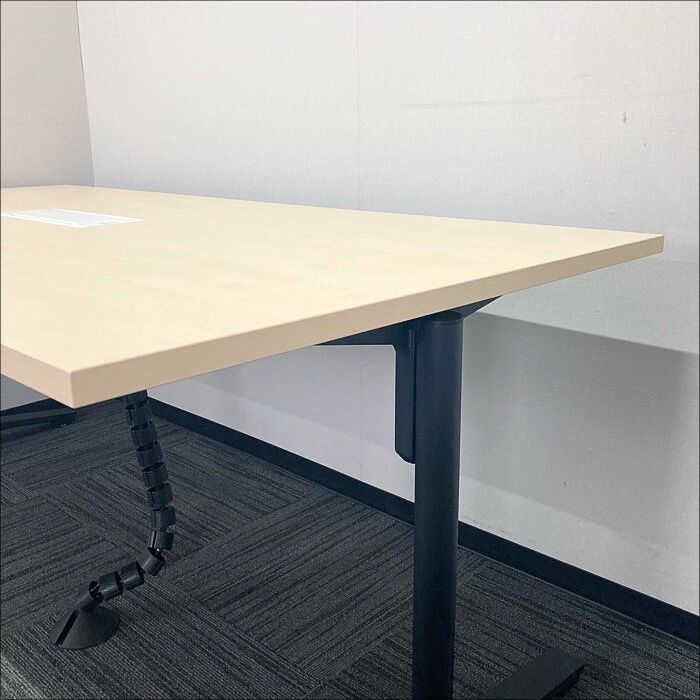 コクヨ ビエナシリーズ ミーティングテーブル WTT-V189BM10 W1800×D900×H720 キャスター脚 天板:ホワイトナチュラル/脚:ブラック 2019年製 中古 ⑩