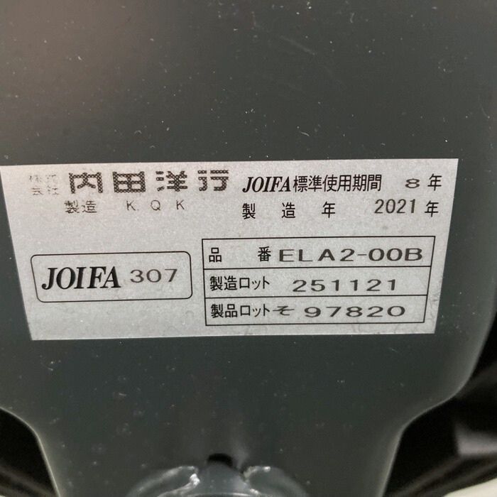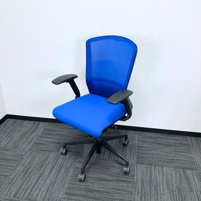 内田洋行 エルフィチェアシリーズ オフィスチェア[フルアジャスタブル肘] ハイバック マリンブルー 2021年製 中古