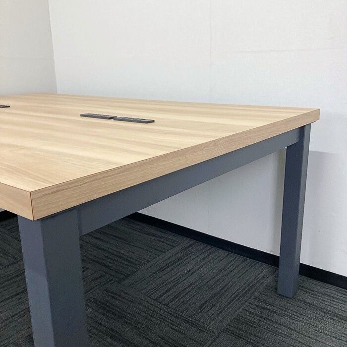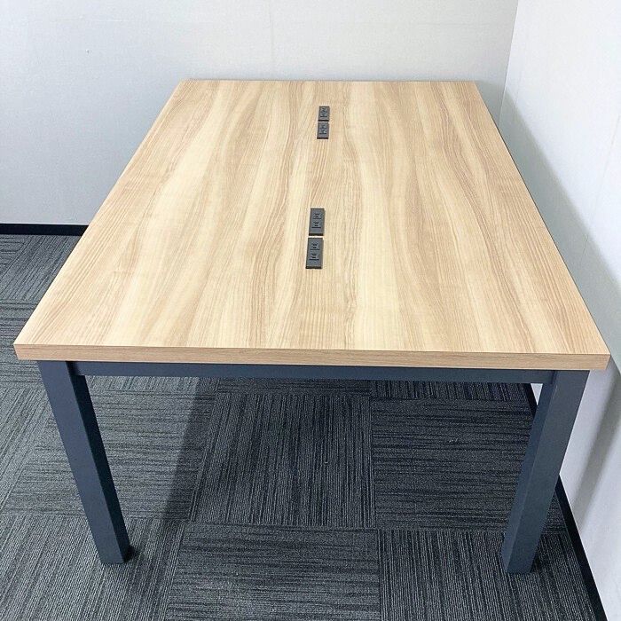 ミーティングテーブル W1600×D1100×H720 コンセント口付き 天板:木目/脚:ブラック 中古 ⑳