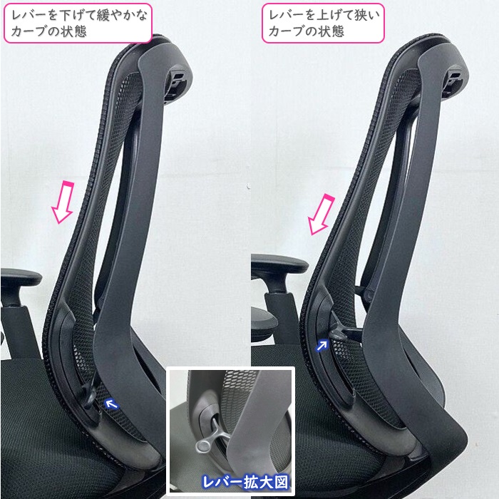 バックカーブアジャスト機構や前傾姿勢付きの背座シンクロリクライニングなどその他にも多彩な機能を搭載。