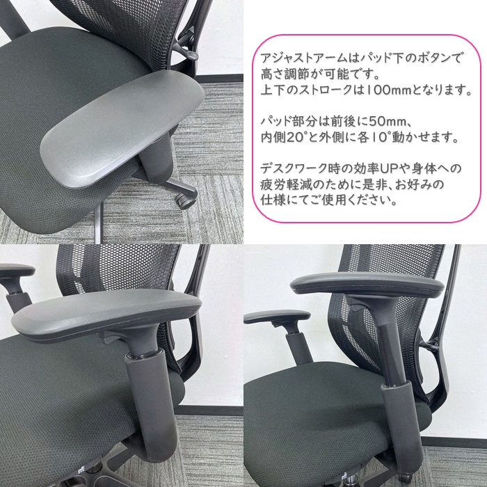 オカムラ シルフィーチェアシリーズ オフィスシーティング C685XR FMP1 アジャストアーム付き ブラックフレーム ハイバック ブラック 2023年製 中古