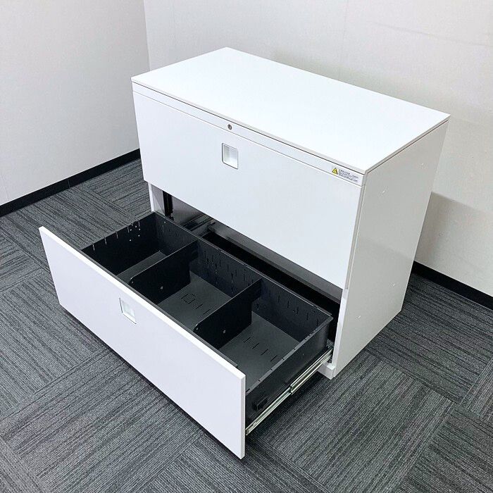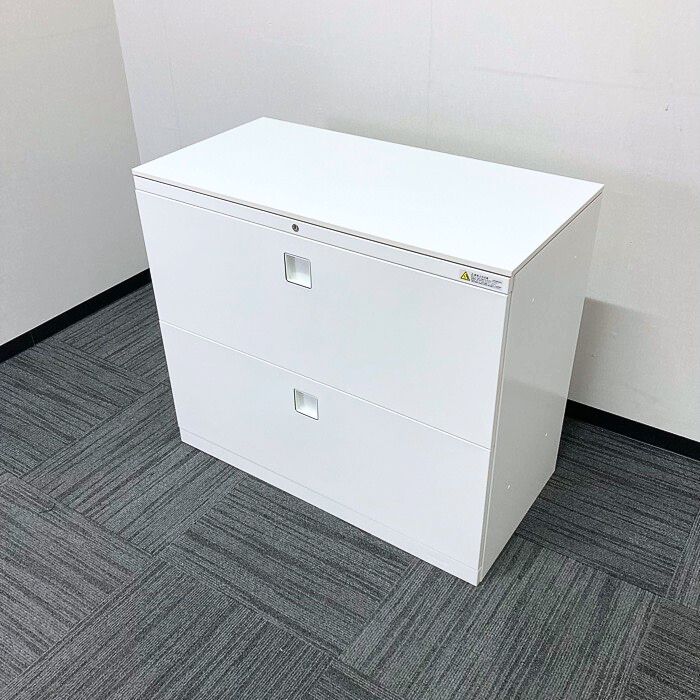 オカムラ レクトラインシリーズ 2段ラテラルキャビネット 4BG1ZC ZA75 W900×D450×H780 天板付き ネオホワイト 2019年製 中古