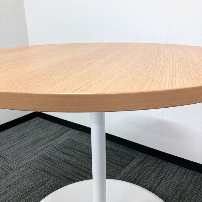 オカムラ アルトリビングシリーズ 円形テーブル MS525SB Φ750×H700 天板:ネオウッドミディアム/脚:ホワイト 2014年製 中古 ⑳