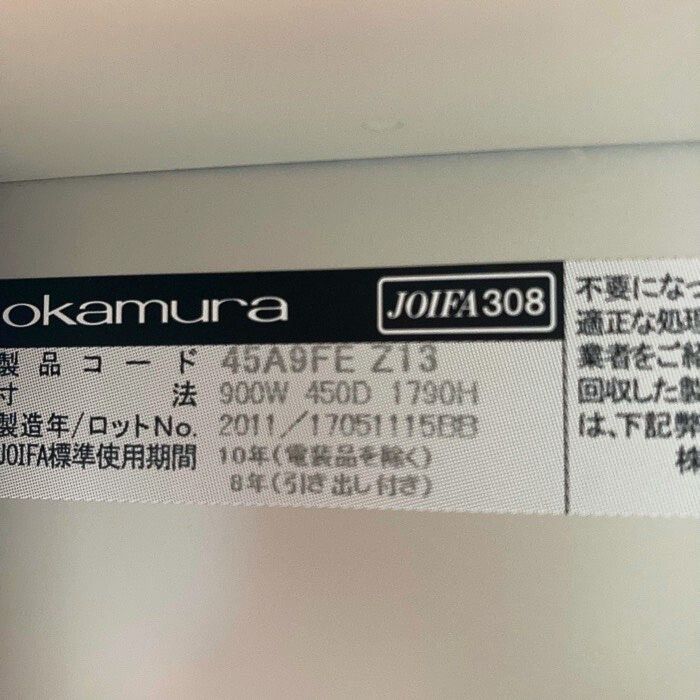 オカムラ FZタイプロッカー 9人用ロッカー45A9FE Z13 W900×D450×H1790 ライトスモーク 2011年製 中古