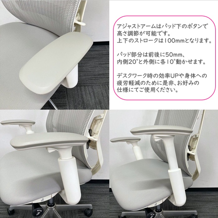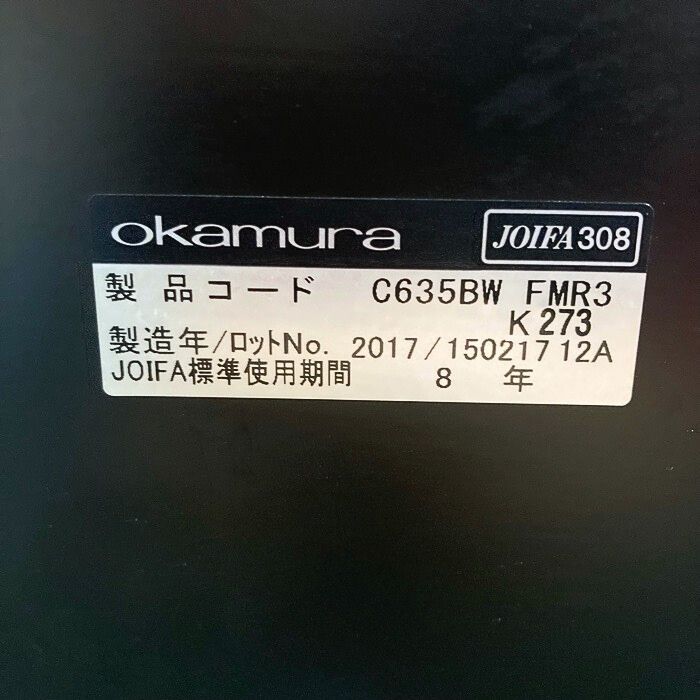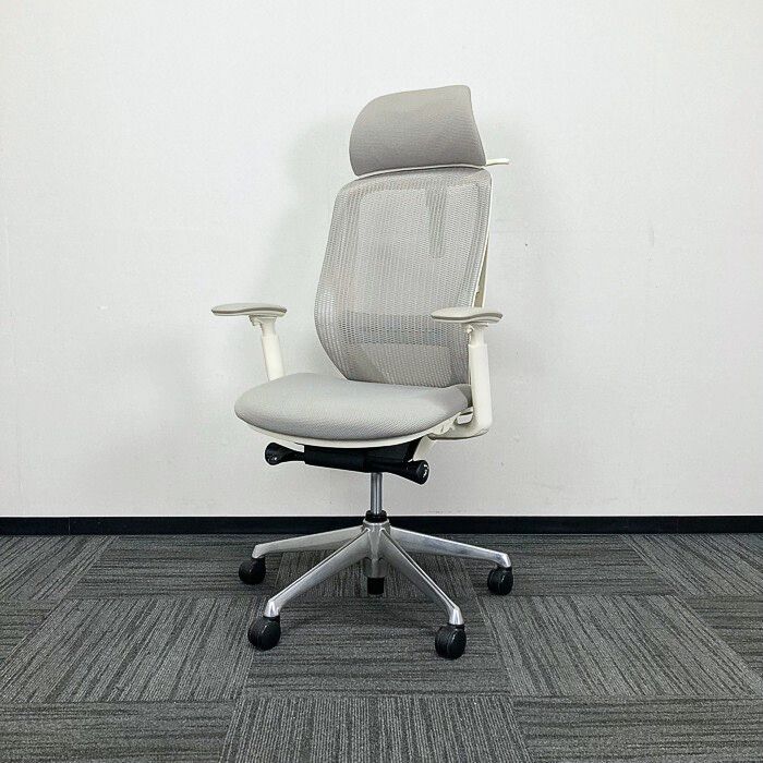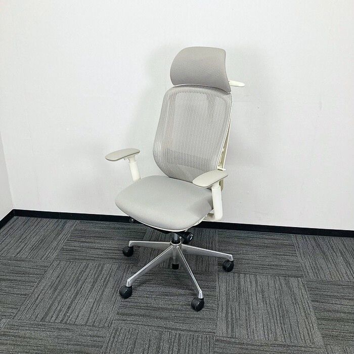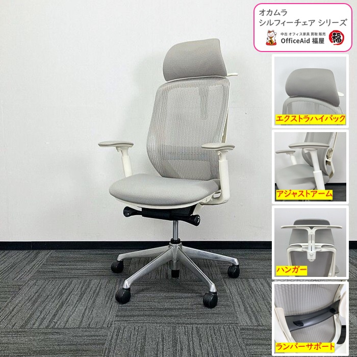 オカムラ シルフィーチェアシリーズ オフィスシーティング C635BW FMR3 エクストラハイバック アジャストアーム付き ランバーサポート付き ホワイトフレーム/ライトグレー 2017年製 中古