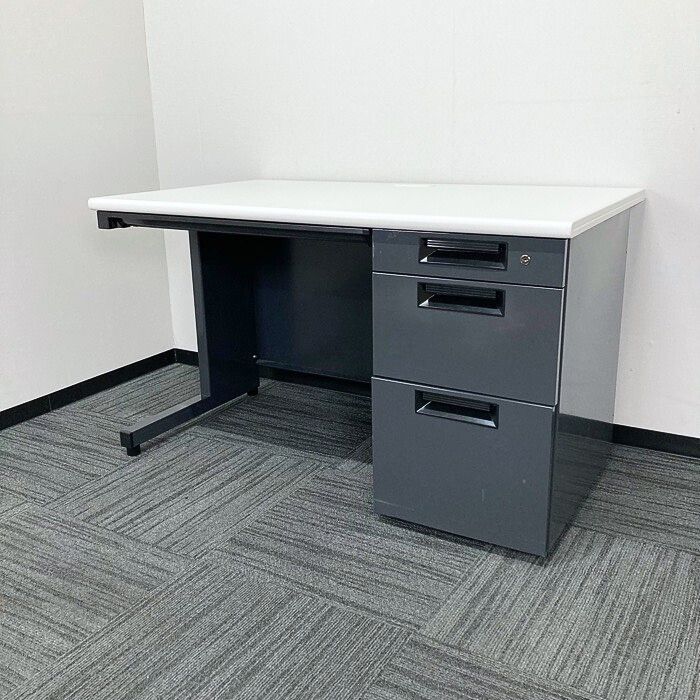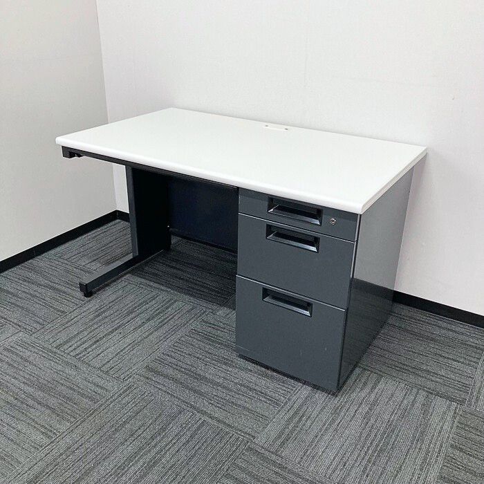 プラス フラットラインシリーズ 片袖デスク SP-T127 W1200×D700×H700 天板:ホワイト/本体:エルブラック 2016年製 中古 ⑳