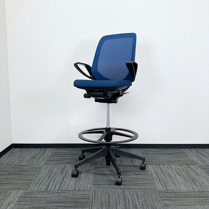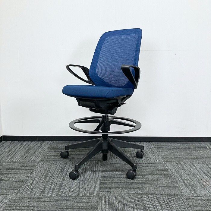 イトーキ ノートチェアシリーズ タスクチェアハイポジションタイプ KJ-186JVP-T1B2 ループ肘 プレーンメッシュバック ネイビーブルー 2023年製 アウトレット品 ⑩