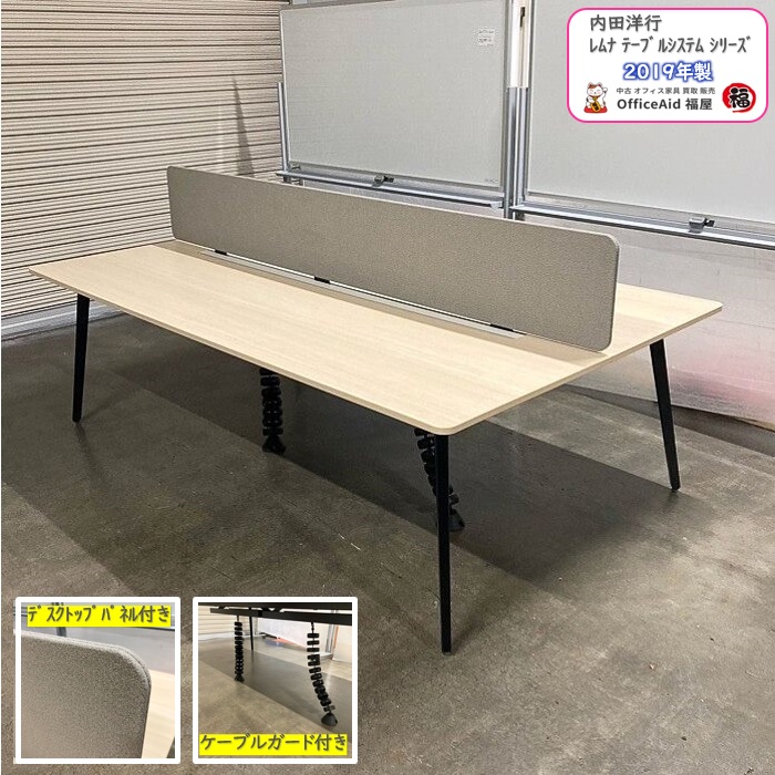 内田洋行 レムナシリーズ フリーアドレステーブル 型番:5-200-2453 W2400×D1400×H720 天板:ライトファインウッド/脚:エルブラック 2019年製 中古 ⑩