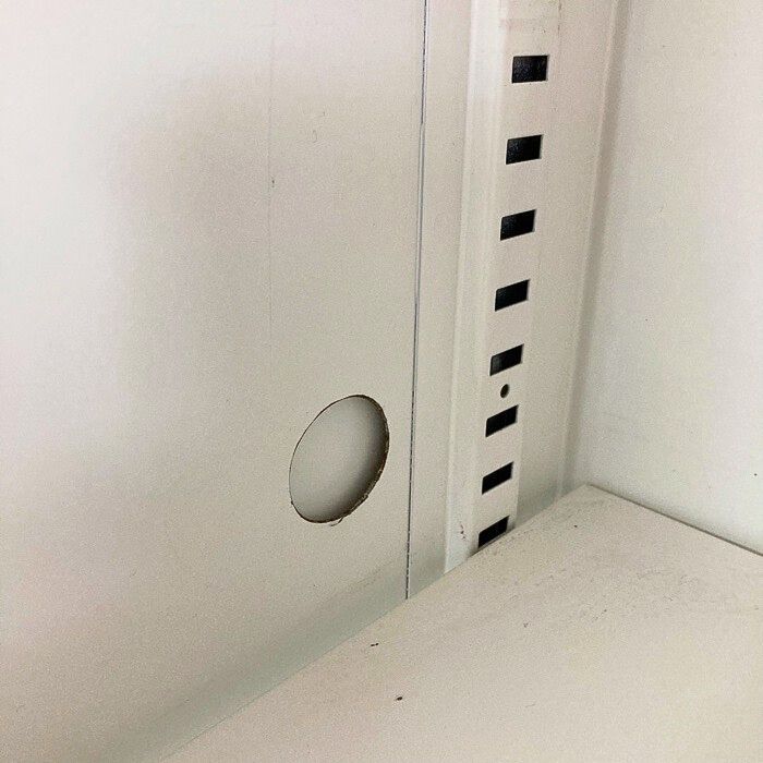 下段オープンの左側面上部の加工穴あり(画像参照)連結側のためご使用に問題はございません。