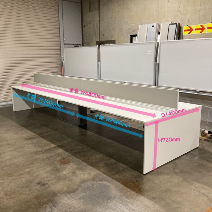 イトーキ インターリンクRシリーズ フリーアドレスデスク デスクトップパネル付き W4800×D1400×H720 本体:ホワイト/パネル:ライトグレー 2017~2018年製 中古 ※SALE品