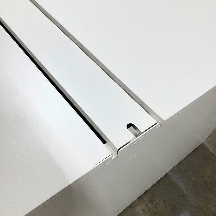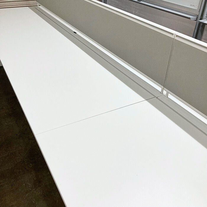 スチールハニカム構造により薄さと強度を兼ね備えた天板は一枚の長さが2400mm、1800mmの組み合わせになります。