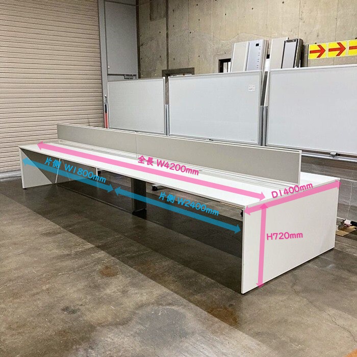 イトーキ インターリンクRシリーズ フリーアドレスデスク デスクトップパネル付き W4200×D1400×H720 本体:ホワイト/パネル:ライトグレー 2017~2018年製 中古 ⑩