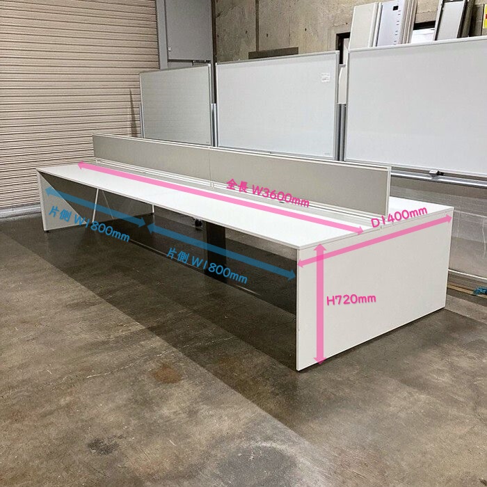 イトーキ インターリンクRシリーズ フリーアドレスデスク デスクトップパネル付き W3600×D1400×H720 本体:ホワイト/パネル:ライトグレー 2017~2018年製 中古 ⑩