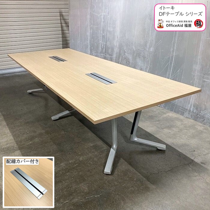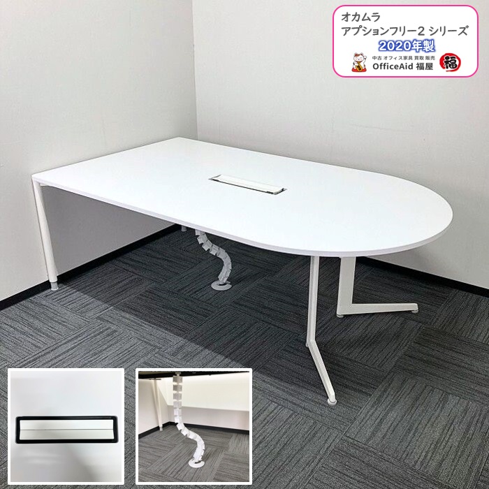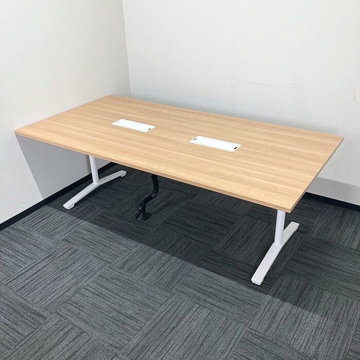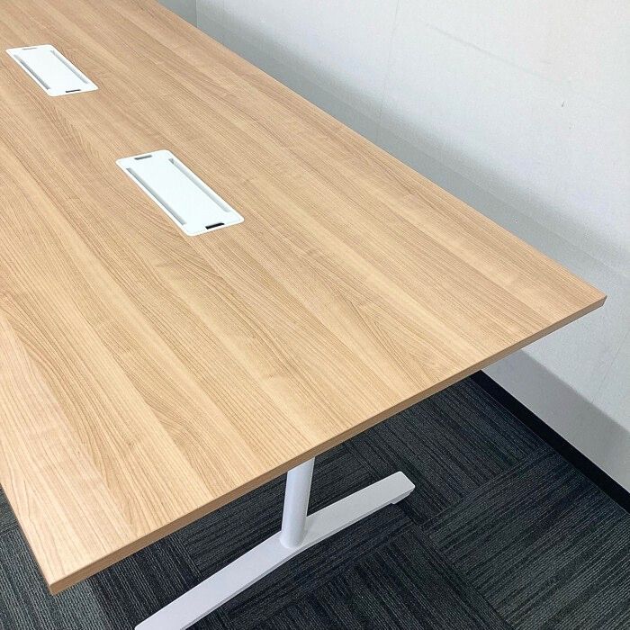 コクヨ ビエナシリーズ 大型ミーティングテーブル W2100×D1050×H720 天板:ラスティックミディアム/脚:ホワイト 2018年製 中古 ⑩