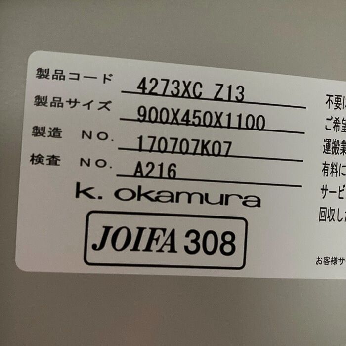 オカムラ 42シリーズ 3段ラテラル 4273XC Z13 W900×D450×H1120 ライトスモーク 中古 ※SALE品