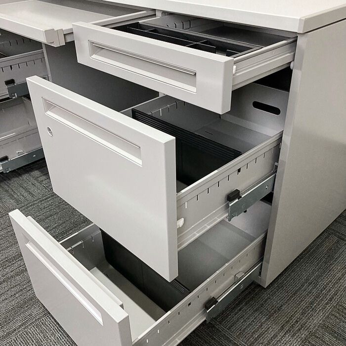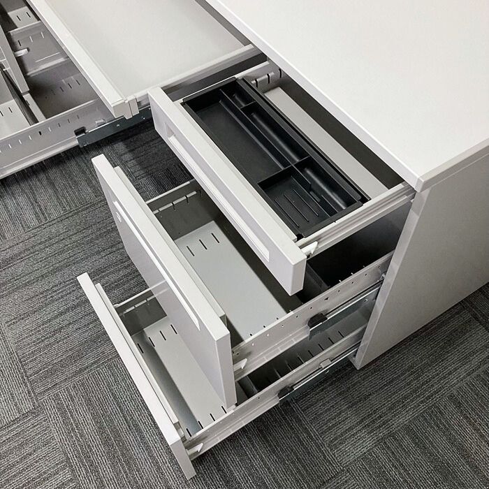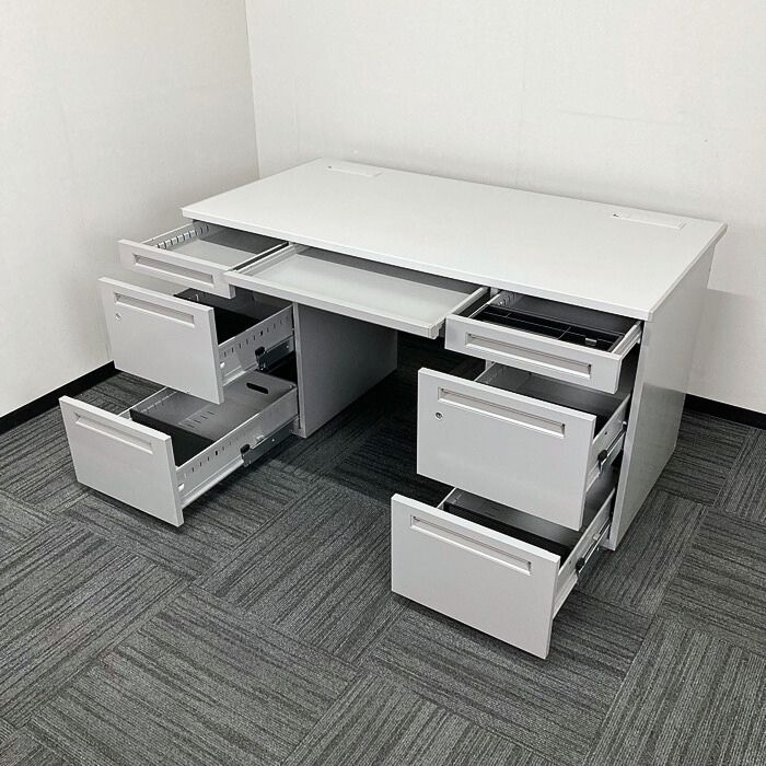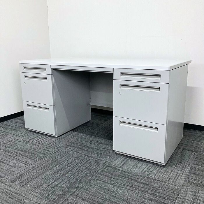 内田洋行 FEED®-Rデスクシステムシリーズ 両袖デスク 品名:FRFP 1400PD MG サイズ:W1400×D700×H700 マイルドグレイ色 2019年製 中古 ⑩
