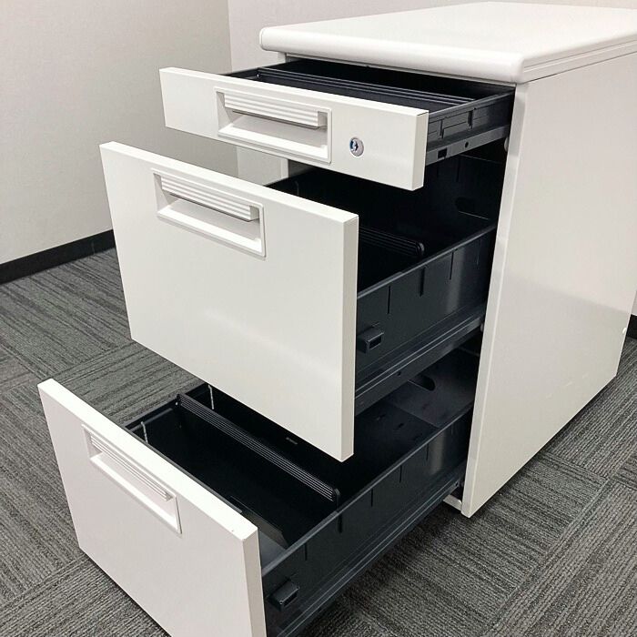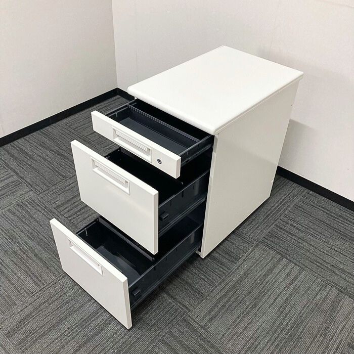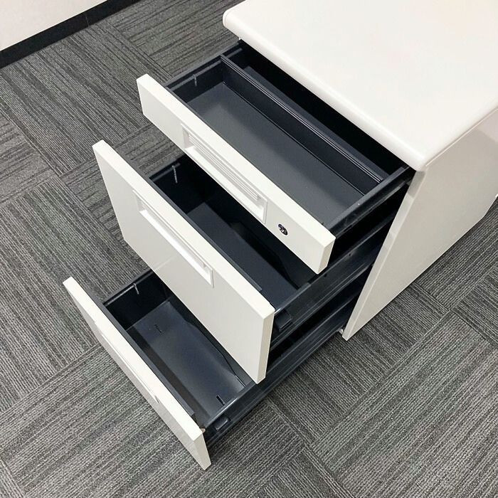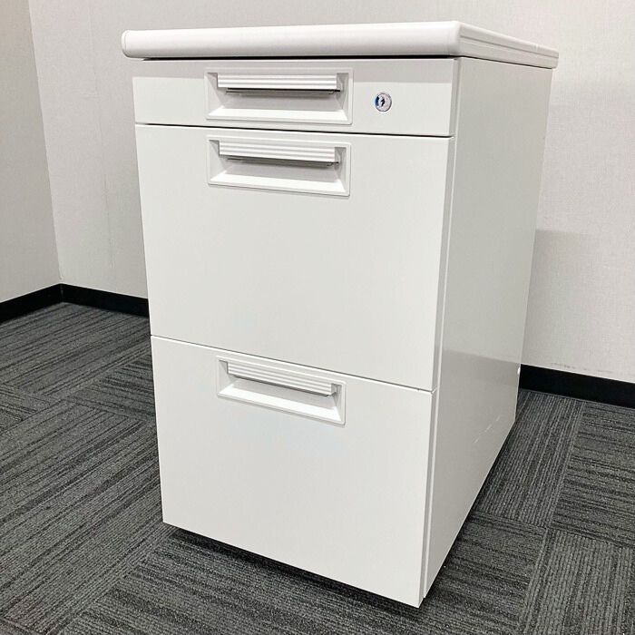 プラス LEEDシリーズ 3段脇机 LE-W047A-A3 W4 W400×D700×H700 ホワイト 2022年製 中古 ⑩