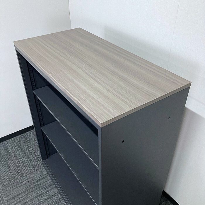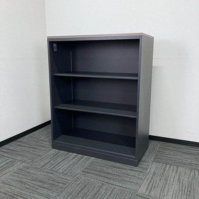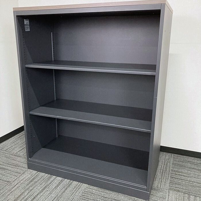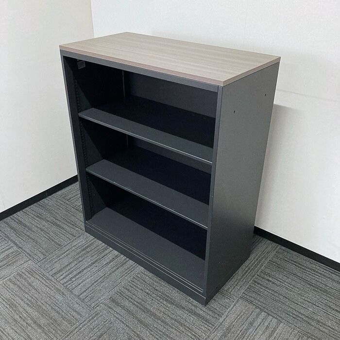 イトーキ エスキャビネットシリーズ オープン棚型 H1-M1090LS-T1 W900×D450×H1118 天板:アッシュドオークD/本体:サテンブラック 2021年製 中古 ⑩