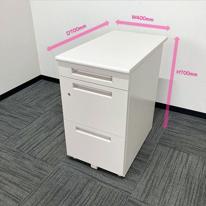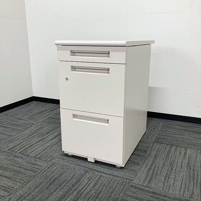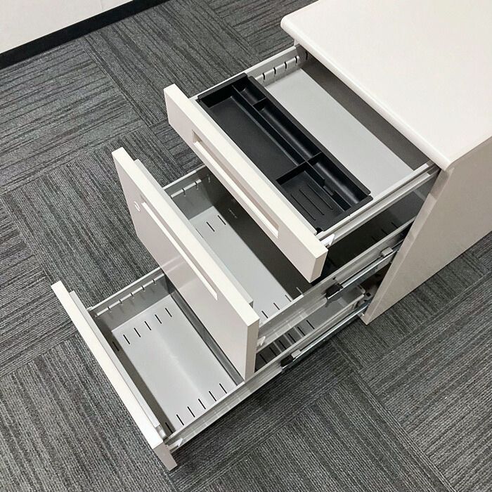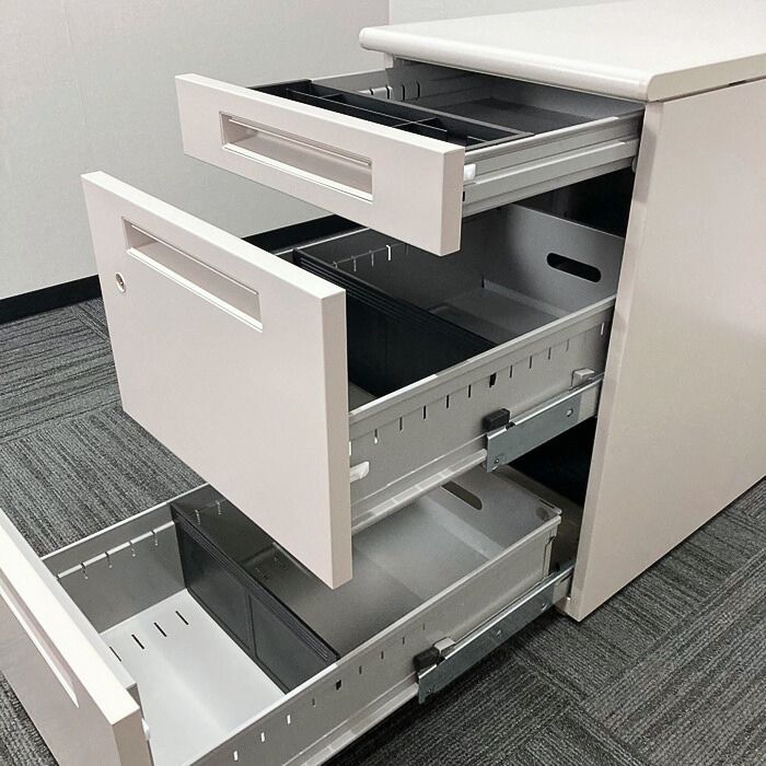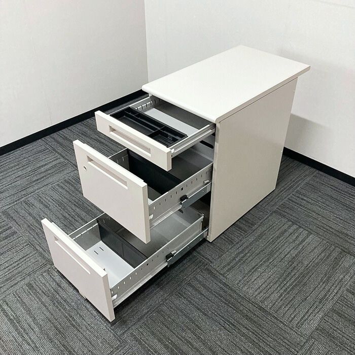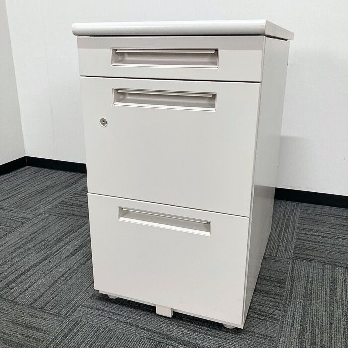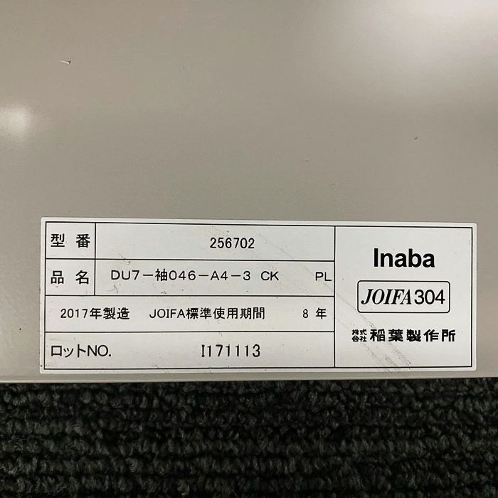 イナバ デュエナシリーズ 3段脇机 品名:DUT-袖046-A4-3CK W400×D700×H700 プラチナライト 2017年製 中古 ⑩