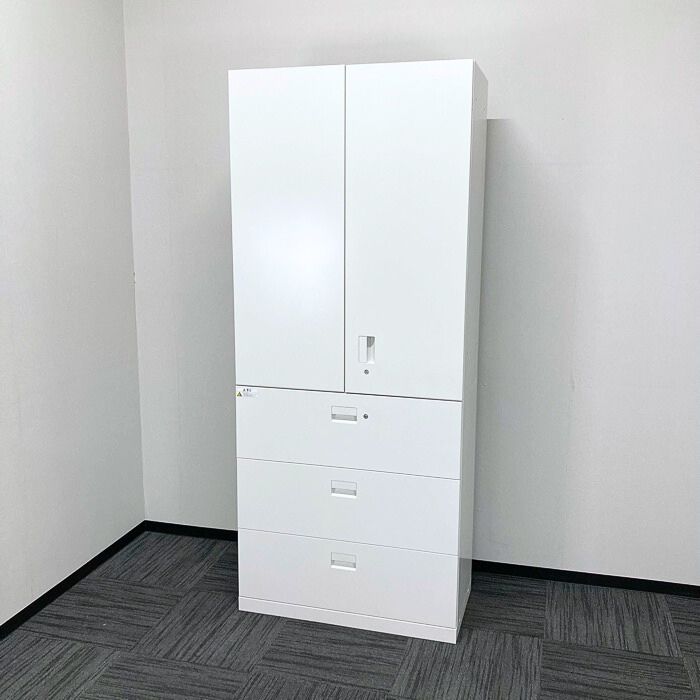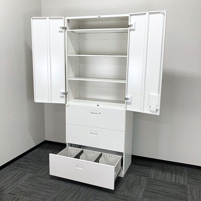 イトーキ エスキャビネットシリーズ 両開き書庫+ラテラルキャビネット W900×D450×H2136 ホワイト 2024年製 中古 ⑩