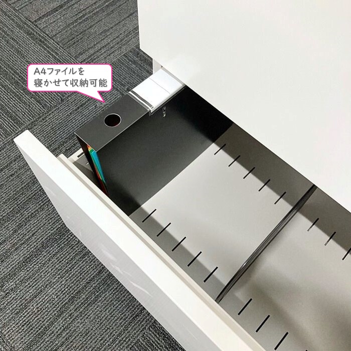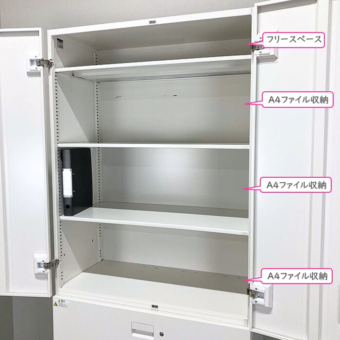 上置きは高さ1186mmでA4ファイルが3段とフリースペースの確保ができ、下置きは950mm(ベース含む)でA4ファイルを3段収納できます。