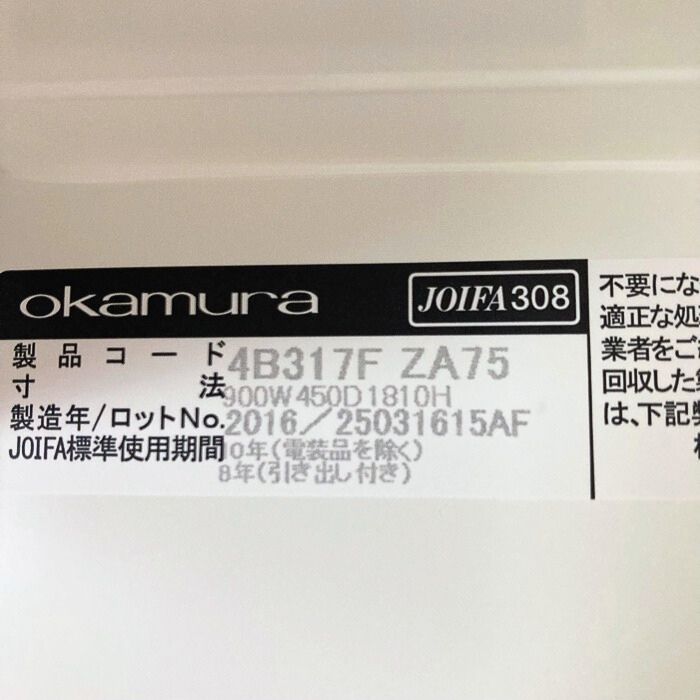 オカムラ レクトラインシリーズ 両開き書庫 4B317F ZA75 W900×D450×H1810 ネオホワイト 2016年製 中古 ⑩