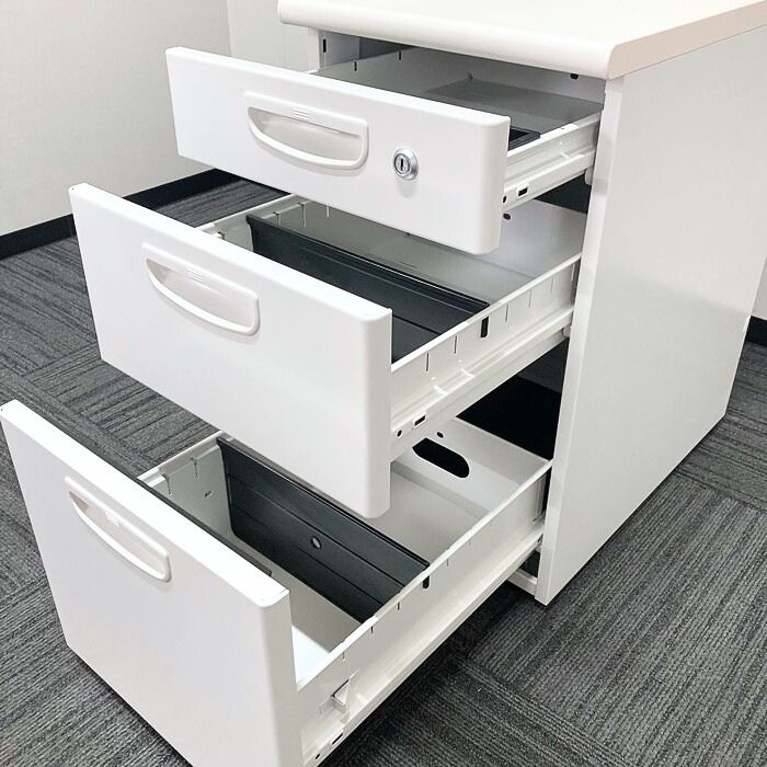 平デスクや片袖デスクに隣接して設置することで、片袖デスクや両袖デスクとしてご使用頂けます。
