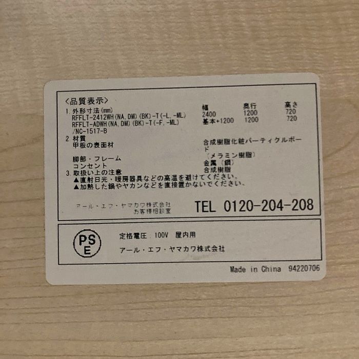 アール・エフ・ヤマカワ フリーアドレステーブル RFFLT-4812 W4800×D1200×H720 天板:ナチュラル/脚:ブラック 中古 ⑩