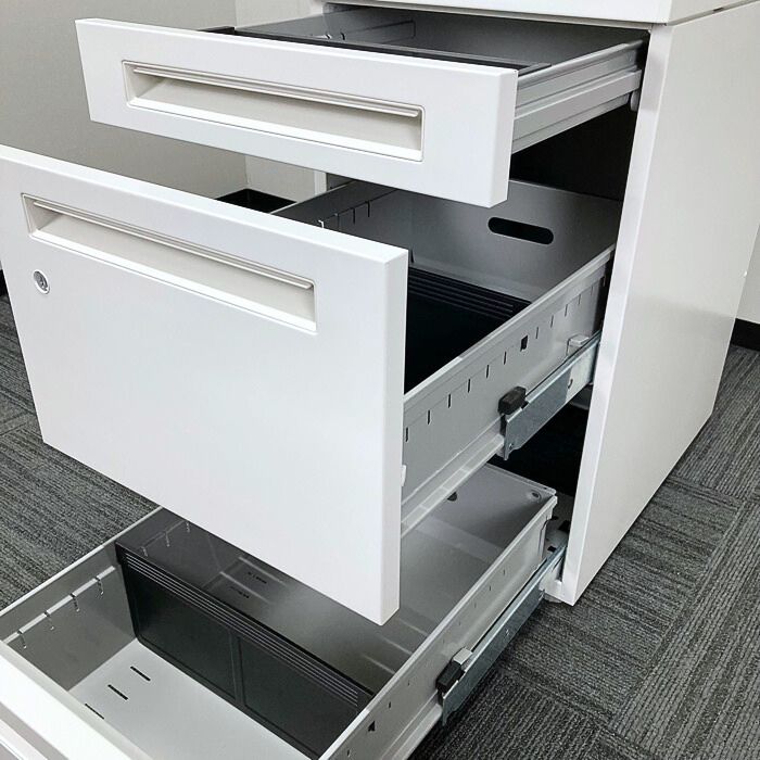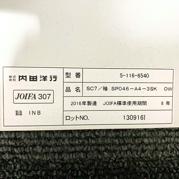 内田洋行 スカエナシリーズ 3段脇机 SP046-A4-3SK W400×D700×H700 オフホワイト 2016年製 中古 ⑩