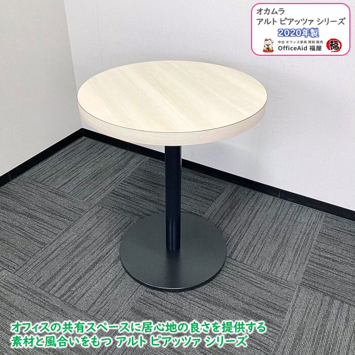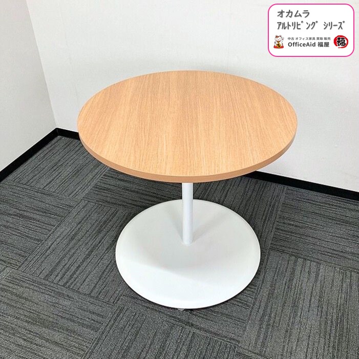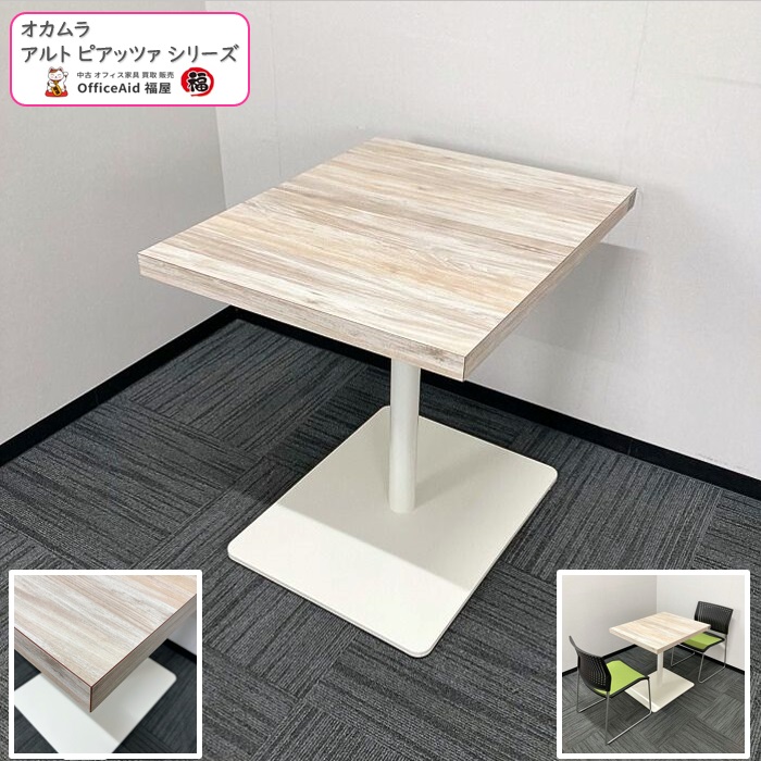 オカムラ アルトピアッツァシリーズ カフェテーブル MB521G MW74 W750×D600×H720 天板:ビンテージエルム/脚:ホワイト 2017年製 中古 ※SALE品