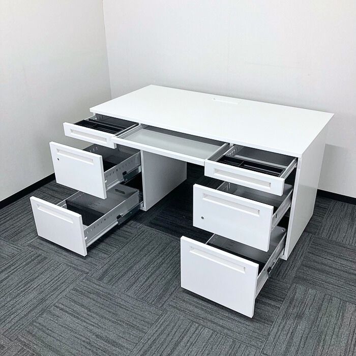 内田洋行 スカエナシリーズ 両袖デスク 品名:SEP1400PD W1400×D700×H700 天板:ピュアホワイト/本体:オフホワイト 2021年製 中古