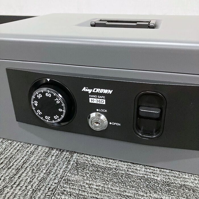 日本アイ・エス・ケイ 手提げ金庫[ダイヤル錠+シリンダー錠] H-36D W360×D270×H153 ダークグレー 新古品