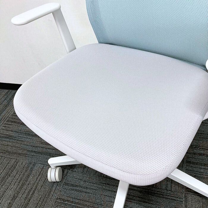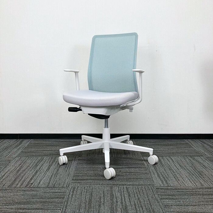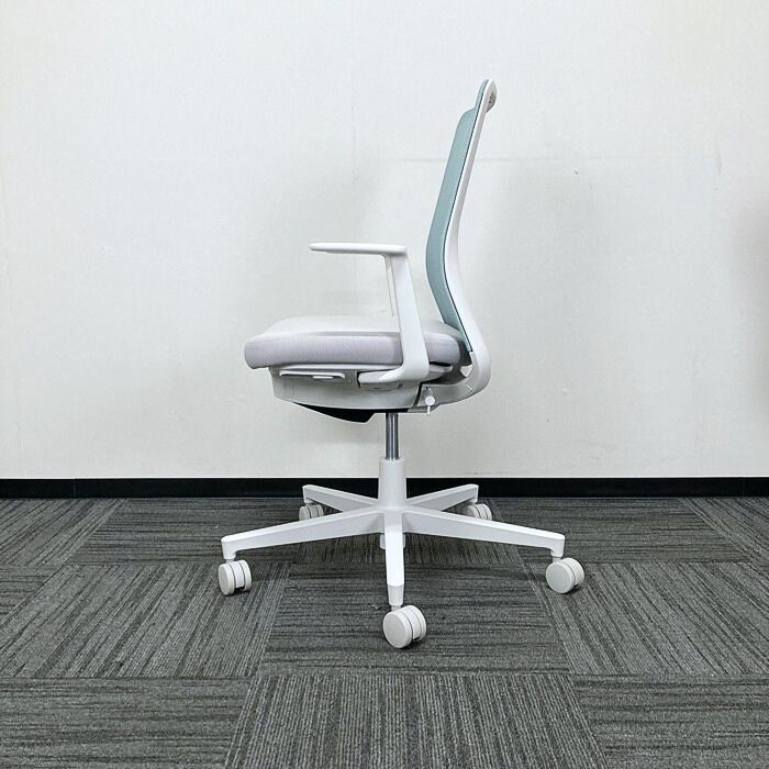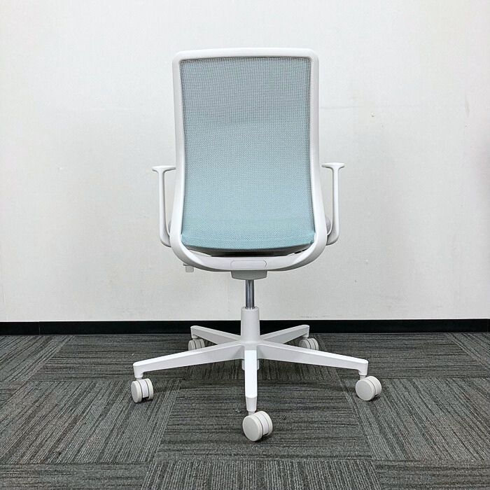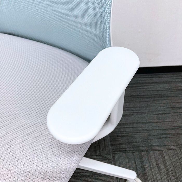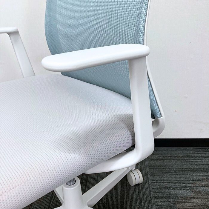 コクヨ モネットチェアシリーズ オフィスチェア[L型肘] CO3S-1-E11 背:アッシュターコイズ/座:ライトグレー フレーム:ホワイト 2021年製 中古 ⑩