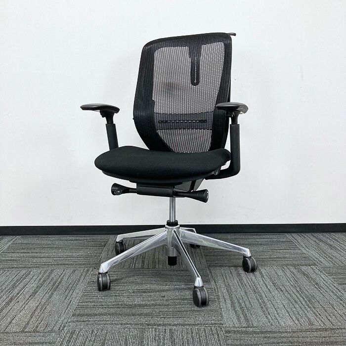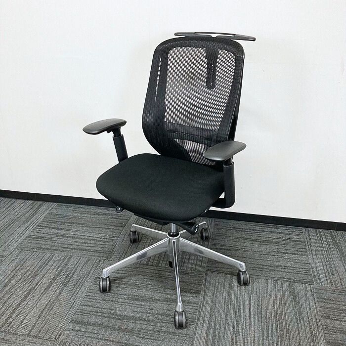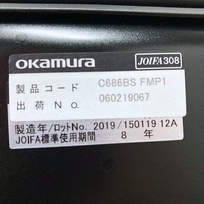 オカムラ シルフィーチェアシリーズ オフィスシーティング C686BS FMP1 ブラックフレーム ハイバック アジャストアーム ハンガー付 背/座:ブラック 2018年製 中古