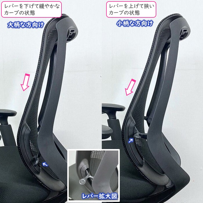 背もたれのカーブを2段階で調節できる新感覚のオフィスシーティング。