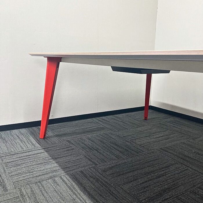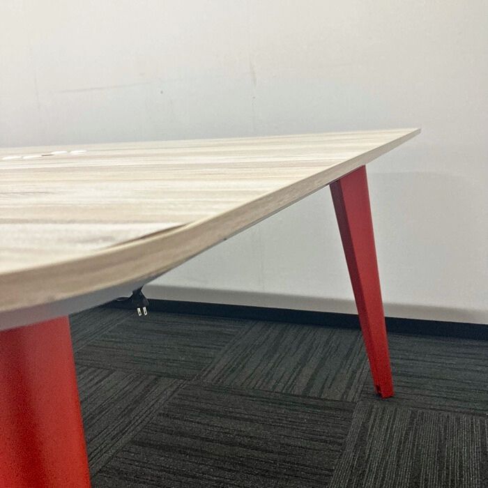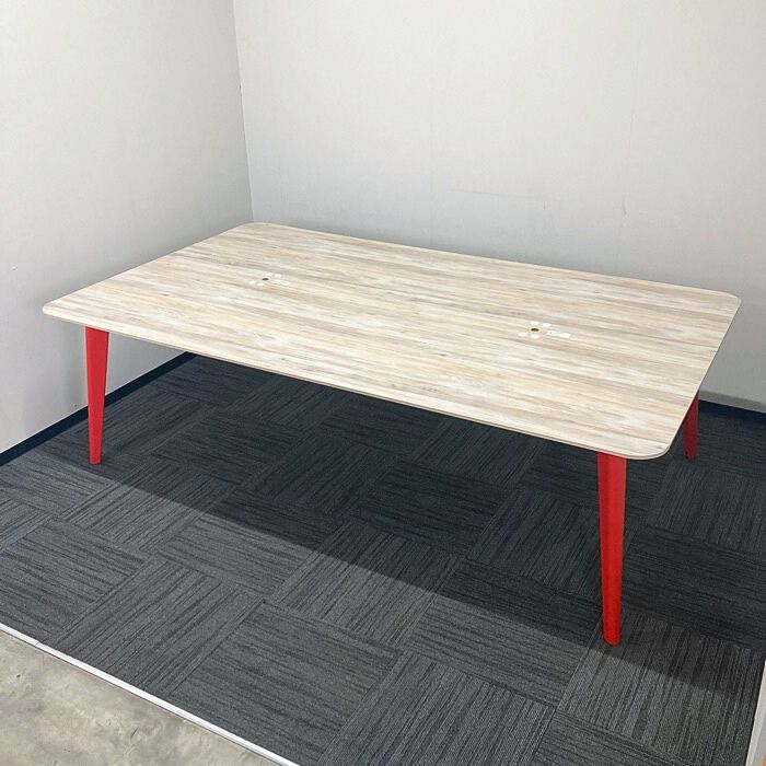 オカムラ ライブスシリーズ ワークテーブル 3R1A4P MEP4 W2400×D1400×H720 天板:ビンテージエルム/脚:オレンジレッド 2020年製 中古 ※SALE品
