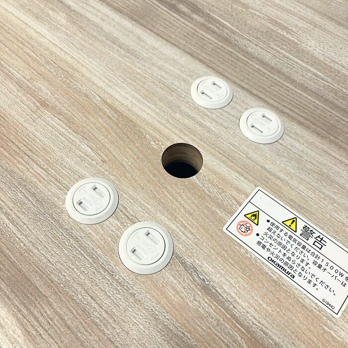 天板中央には電源コンセントが埋め込まれており、手軽に電源の抜き差しが可能です。